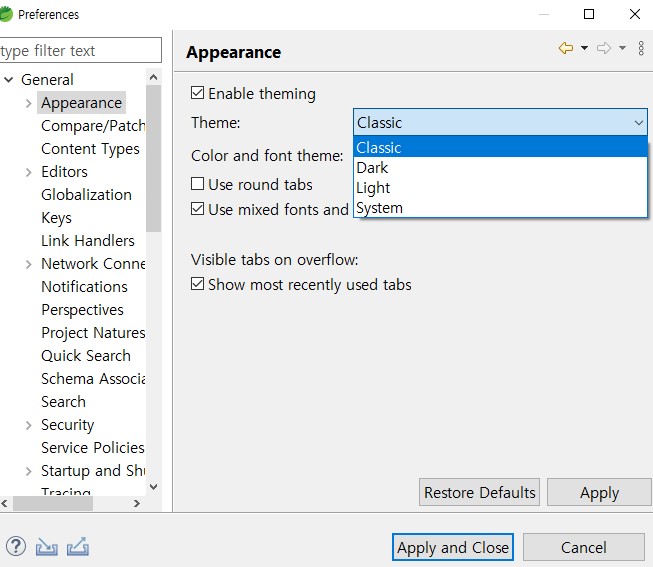 Windows -> Preferences -> General -> Appearance 에서 다크모드를 사용중인 상태에서 Classic으로 바꾸면 오류나 멈춤 현상이 전보단 더 나아졌고 복사 붙여넣기도 빠르게 실행이 된다..
