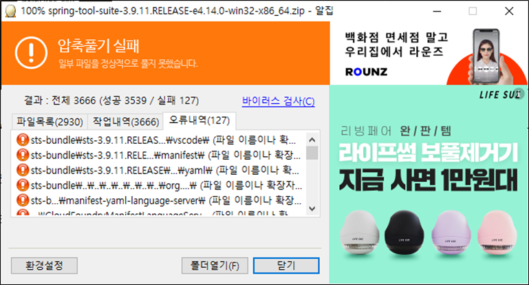 [Spring, STS, 오류해결] STS 압축풀기 실패, Spring legacy project 생성 안되는 오류 해결 방법